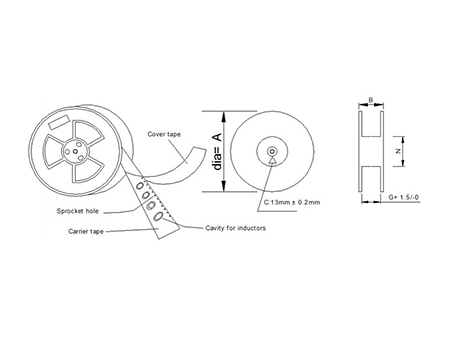 Embalaje del inductor de potencia 6.5mm 7.5mm blindadoDimensiones de la cinta y el rodillo:(unidad:mm)