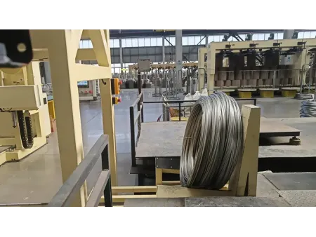 Sistema vertical automatizado diseñado para manipular, embalar, pesar y etiquetar rollos de alambre y bobinas cortadas con precisión y eficiencia, optimizando el proceso desde la carga hasta el almacenamiento final