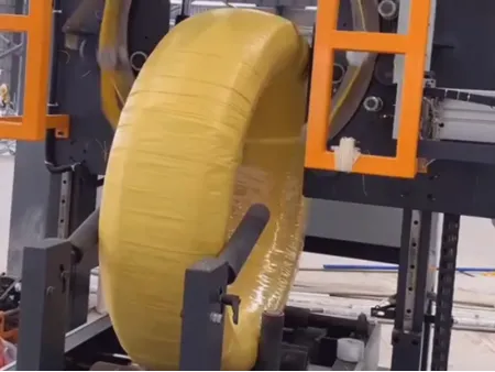 Han sido diseñadas para empaquetar bobinas de alambre y bobinas cortadas, con diámetros internos de 350 mm y externos de 600 mm aproximadamente. El proceso es semiautomático, los operadores se encargan de la carga y descarga, mientras que el envoltorio y la transferencia de las bobinas se realizan de forma automática. Cada ciclo de envoltura se realiza en un lapso de 50 segundos. Una vez terminado, el carro de bobinas regresa a la zona de carga para facilitar su retiro manual. Estos sistemas son versátiles, adaptándose a diferentes tamaños de bobinas, generalmente se utilizan para bobinas de alambre y fleje asegurando un empaquetado eficiente, uniforme y que facilita tanto el almacenamiento como el transporte.