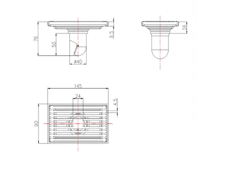 Desagüe de Piso, de Acero Inoxidable Cepillado con Desodorizante y Doble Filtro 90×145mm