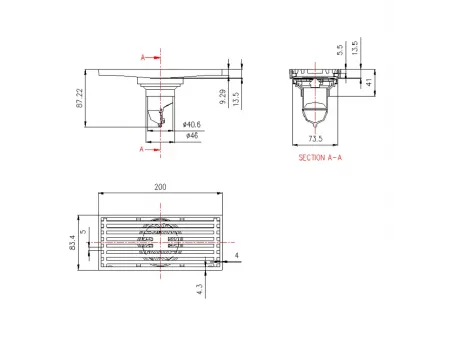Desagüe de Piso, de Acero Inoxidable Cepillado con Desodorizante y Doble Filtro 80×200m