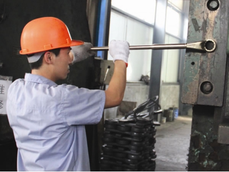 Esta llave es fabricada de acuerdo con la norma Q/ZBF-164 A con aleación de cobre estampada, lo que le proporciona a la llave varias características deseables, tales como resistencia a la tracción, no producción de chispas, larga vida útil y propiedades mecánicas estables, por lo tanto es de uso general en atmósferas inflamables o explosivas, en donde sirve para aflojar o apretar pernos y tuercas grandes de cabeza hexagonal.