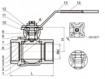 Válvula de bola de acero inoxidable de 2 piezas de 1000psi con ISO5211