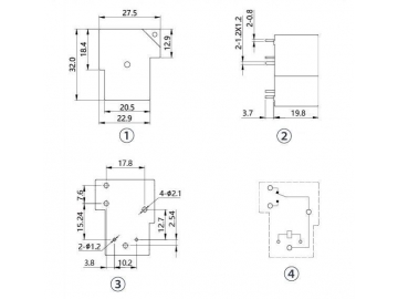 ① Vista frontal; ② Vista lateral; ③ Tamaño de instalación; ④ Diagrama de cableado