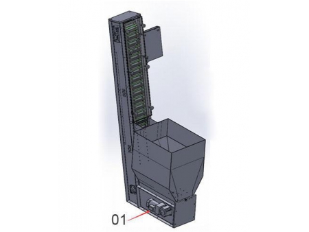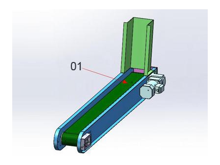 - Mecanismo para descarga de productos Una vez que se completan los procesos, el transportador lleva los productos al área de empaque.01: Mecanismo de descarga de productos