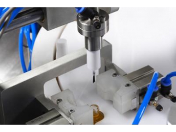 La envasadora para esmaltes de uñas, en forma automática, llena los envases, coloca los pinceles y cierra la tapa.