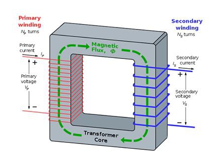 La corriente AC circula mediante el bobinado primario de los transformadores y produce un campo magnético alternativo en los ejes del transformador. Posteriormente el campo magnético alternativo gira en el bobinado secundario de los mismos ejes y forma el voltaje, realizando el propósito del cambio de voltaje AC.