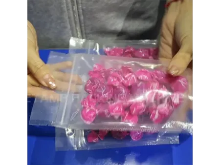 Esta envasadora es ideal para sus necesidades de empaque de un carril de materiales granulares uniformemente densos. Cuenta con un sistema de dosificación de llenado de vasos volumétricos (o llenadora volumétrico) rotativos de alta precisión, fabricado con acero inoxidable SUS304 duradero, que garantiza la precisión y el llenado de alta velocidad. Con un ancho máximo de rollo de película de 170mm, produce sobres adaptados a sus necesidades, que van desde 16-80mm de ancho y 50-160mm de largo . Puede confiar en su sistema de dosificación ajustable y alimentación rotativa para mantener la precisión y la eficiencia. Operando a una velocidad de 20-40 bolsas por minuto, esta máquina envasadora también permite una limpieza rápida y fácil, gracias a sus partes de contacto desmontables. Además, el dispositivo de sellado vertical de 90° garantiza una excelente calidad de sellado al tiempo que simplifica el mantenimiento.