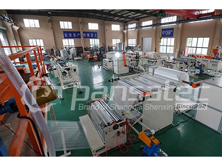 Nuestra línea de extrusión de plástico burbuja de 3 capas puede producir rollos de plástico burbuja (film alveolar o poliburbujas) de 2 y 3 capas.