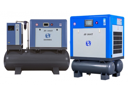 - Este compresor de tornillo rotativo con inyección de aceite es accionado por un motor de imanes permanentes mixto y tiene menos piezas de conexión que otros compresores, de manera que no hay que preocuparse por el desgaste de las piezas móviles como los engranajes, las poleas, las correas, los acoplamientos, las juntas del eje, entre otras.