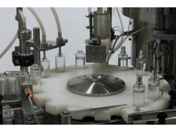 Llenadora gravitacional con tapadora a presión, envasado de perfumes