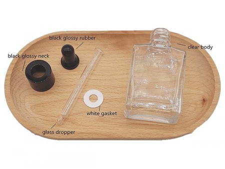 - Los frascos cuentagotas rectangulares de vidrio son fáciles de desmontar y limpiar;