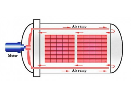 La autoclave vapor-aire es una autoclave por lotes para esterilizar alimentos envasados en casi todos los tipos de latas. Cuenta con dos tuberías de vapor que se instalan en la parte inferior de la autoclave por lotes para proporcionar calor a la cámara del tanque sin la necesidad de un proceso de escape. Un ventilador axial de alto flujo ubicado dentro de la autoclave se utiliza como fuerza motriz para mezclar el vapor con el aire y hacer circular la mezcla de vapor y aire como medio de calentamiento por todo el autoclave para esterilizar uniformemente los alimentos enlatados.