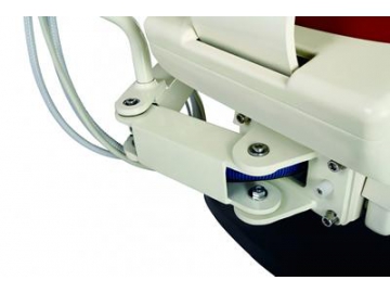 - La unidad dental HY- F3 está equipada con un apoyabrazos doble, con el externo pudiendo abrirse cuando sea necesario. El brazo equilibrado utiliza un diseño de bloque de presión y la junta usa un rodamiento plano abatible que permite a los usuarios empujar y tirar del instrumento libremente cuando sea necesario.