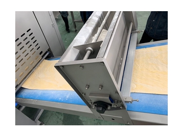 Divide la masa mezclada en trozos y extruye los trozos en una banda de masa continua. La salida de la banda de masa con 600 mm; espesor 1,5 ~ 2,5 cm ajustable; Con ruedas, fáciles de quitar durante la limpieza y el mantenimiento. - Calibrador