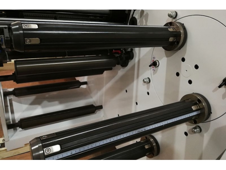 - Unidad de rebobinado de torreta/torre La unidad de rebobinado de torreta o torre está diseñada con ejes de aire de varios núcleos de rebobinado. El eje de aire en expansión cuenta con interruptor de encendido / apagado.