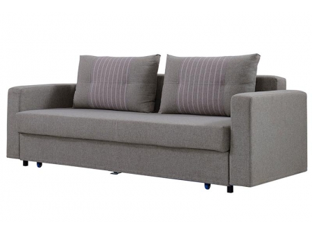 El sofá convertible de tela de tres cuerpos con lugar para almacenamiento AD130 utiliza una estructura de acero y madera, posee apoyabrazos dobles desmontables y almacenamiento. Si tira del cojín del asiento hacia adelante cuando está armado como sofá, puede ver la caja de almacenamiento debajo de este. Si lleva el respaldo hacia abajo y lo cubre en el compartimiento de almacenamiento, puede transformar este sofá en una cama.