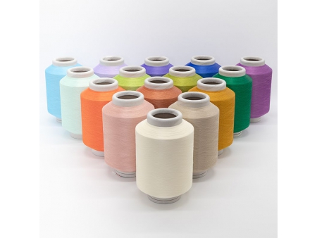Este hilo recubierto antimicrobiano y antiolor es un hilo recubierto de spandex que utiliza nuestro hilo DTY antimicrobiano y antiolor como hilo de cobertura exterior.