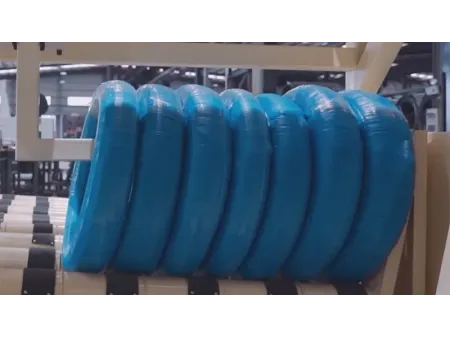 Gracias a su estructura compacta y vertical, se adapta perfectamente a entornos con espacio limitado. Además, automatiza todo el proceso de manipulación de bobinas, el empaquetado, pesaje y etiquetado, facilitando un flujo de trabajo continuo y preciso para bobinas de alambre y bobinas cortadas.