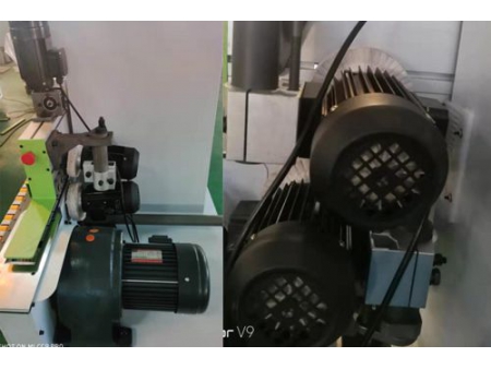 El dispositivo de pre fresado de doble cabezal garantiza cortes uniformes y sin rebabas, de esta manera se preparan las piezas de trabajo antes de proceder con el encolado de bordes.