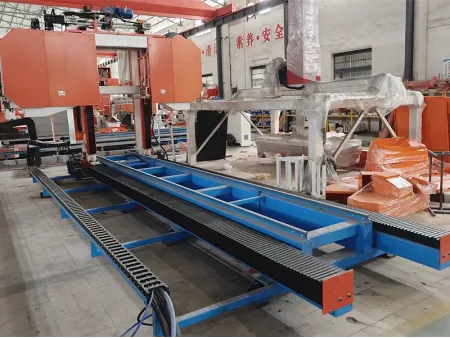 La cortadora horizontal y vertical de pórtico (cortador transversal) de hormigón está equipado con una hoja de sierra horizontal y otra vertical, totalizando dos hojas de sierra. Este cortador de hormigón completa de forma independiente el corte horizontal y vertical de bloques de hormigón, cortando un bloque grande de hormigón a la vez. Las dimensiones del bloque grande de hormigón son: