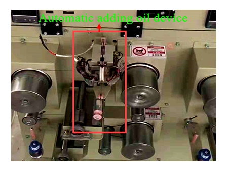 - Esta máquina presenta diversas funciones avanzadas como la medición de la longitud por conversor de frecuencia electrónica, auto apagado si el hilo se rompe, auto apagado cuando se completa el bobinado, fijado del calentamiento, aceitado del hilo, entre otros.