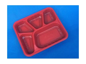 Esta línea de extrusión está especialmente diseñada para producir láminas PP multicapa. Esta línea de extrusión adopta resinas PP como materiales base en combinación con masterbatches (o fórmulas magistrales) y aditivos, a través de múltiples extrusoras que es utilizado para coextrusión simultáneamente de múltiples capas de materiales, junto con procesos de calandrado de tres rodillos, enfriamiento, embutición y bobinado para formar el material en la forma deseada.