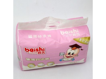 La máquina empaquetadora semiautomática DP-B20D/B30D es especialmente adecuada para el empaquetado de pañales de bebé, braguitas o calzones de aprendizaje, pañales para adultos, empapadores, etc. Esta máquina semiautomática para embolsado y sellado de pañales se caracteriza por su gran eficacia, funcionamiento sencillo, gran flexibilidad, cambio rápido de tamaño, fácil mantenimiento y sobre todo por sus bajos costos de funcionamiento.