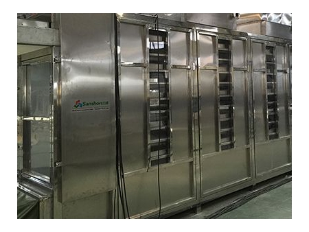 - Los tubos de calefacción intercalados están ubicados entre cada capa para estabilizar la temperatura a lo largo de todo el gabinete, lo que mejora notablemente la calidad del producto final.