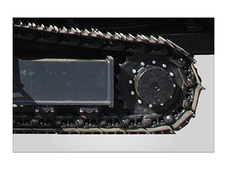 - Este equipo de perforación DTH posee un manipulador hidráulico, el depósito de la tubería de perforación donde ésta se guarda desarmada, y la junta flotante que protege las roscas de la tubería de perforación.