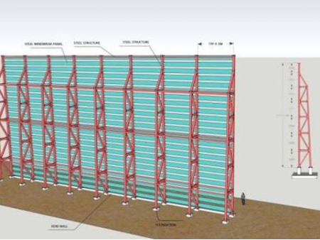 Nuestro sistema de valla para arena se compone fundamentalmente de: cimientos, estructura de acero y paneles de acero. La estructura y los paneles están disponibles con especificaciones personalizadas, y los postes se fabrican en nuestra propia planta para asegurar una mejor calidad. Los paneles de la valla se fijan a los postes estructurales a través de pernos y tuercas de acero inoxidable.