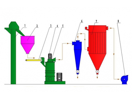 - Recolección: Los productos calificados serán recolectados y los productos no calificados serán nuevamente introducidos en la cámara de molienda para una segunda trituración.