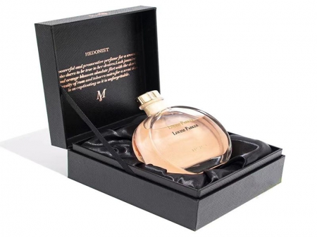 Esta caja deslizable está diseñada especialmente para perfumes. Su forro externo está recubierto de una capa dorada. En la tapa de la caja puede colocarse un logotipo en bronce, que llamará mucho más la atención de los clientes.