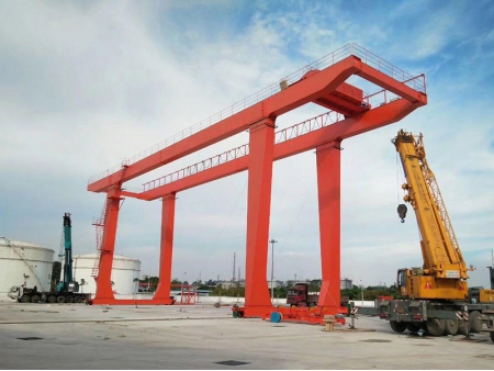 La grúa portuaria para contenedores es una grúa pórtico birriel de servicio pesado con un marco de puerta en forma de U y una distancia de pata o apoyo muy grande de hasta 7m. Es adecuado para la carga y descarga de contenedores, cargas pesadas y grandes.