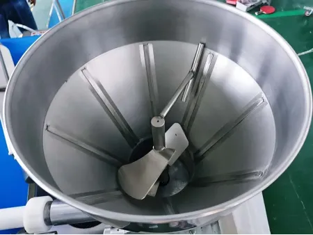 La cámara de relleno es donde se coloca el relleno antes de ser inyectado en la masa o el pastel. Generalmente incluye una tolva con capacidad para 30 kg, lo que garantiza un flujo continuo de relleno para una producción de alta eficiencia. La tolva de relleno está diseñada para empujar suavemente el relleno hacia la masa o el pastel sin dañar su estructura, asegurando un resultado suave y uniforme.