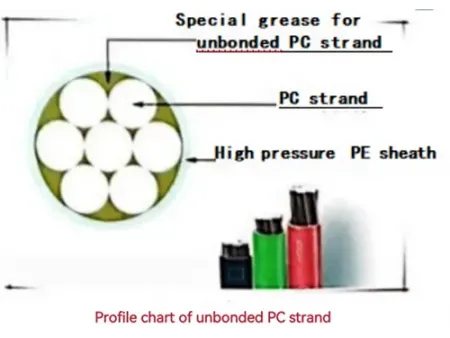 El tubo de acero de hormigón pretensado no adherido está diseñado con una capa de grasa anticorrosión y recubierto por una funda de polietileno de alta densidad (HDPE). Esta construcción especializada no solo protege contra el daño ambiental, sino que también garantiza la libertad de movimiento del cordón dentro de la cubierta, lo cual es crucial para acomodar las fuerzas de tracción y compresión en aplicaciones de concreto pretensado. El color de revestimiento predeterminado es el negro, lo que proporciona una opción estándar y neutra adecuada para diversas estéticas de construcción. Sin embargo, entendemos que proyectos específicos pueden requerir diferentes integraciones visuales. Por lo tanto, ofrecemos personalización en el color de la funda a pedido. Es importante tener en cuenta que los colorantes añadidos se seleccionan cuidadosamente para garantizar que no comprometan el rendimiento de la funda, manteniendo sus cualidades protectoras y su integridad estructural.
