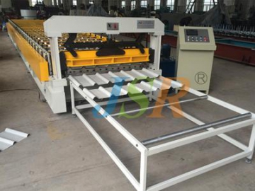 La máquina perfiladora de cubierta para piso YX75-900 se utiliza para hacer cubiertas de metal para la industria de pisos. Aquí se muestra la máquina perfiladora de cubierta para piso con un ancho efectivo de 900mm para su referencia.