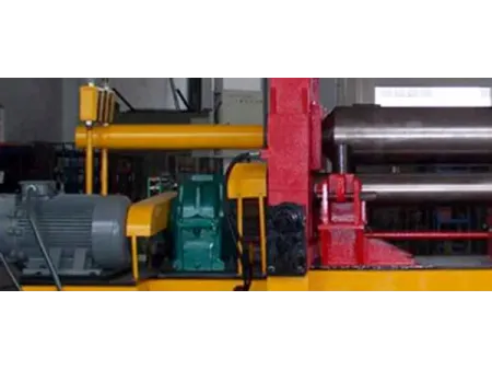 Los rodillos inferiores son rodillos impulsores fijos en su posición, accionados por el motor principal a través del reductor principal. El rodillo superior, que sirve como rodillo accionado, gira por fricción con la superficie de la placa de acero. Su movimiento vertical está controlado por cilindros hidráulicos en ambos extremos. - Movimiento horizontal
