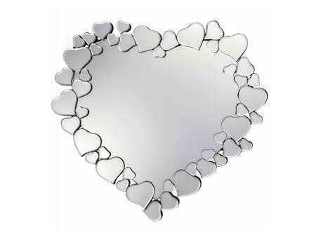 La parte trasera del espejo es una tabla de MDF y los espejos con forma de corazón se colocan en los marcos que pueden ser de diferentes tamaños. Estos espejos tienen bordes biselados para poder asegurar que el contacto con ellos es muy suave. Este espejo resulta práctico para salas de estar, baños, dormitorios, comedores y mucho más, para darle un toque divertido a su decoración.