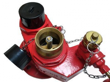 La toma distribuidora de caudal sólo puede ser utilizada en sistemas de columna seca. La conexión de entrada se instala en la entrada del edificio de incendios, mientras que la conexión de salida se instala en un lugar especial.