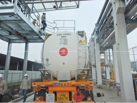 La escalera plegable o abatible es un dispositivo de seguridad que actúa como un puente que permite al operario acceder a la parte superior de la cisterna desde una plataforma de carga fija a varias alturas, lo que permite al operario mantenerse seguro cuando trabaja en altura. Se compone principalmente de peldaños, barandillas y un sistema de equilibrio de cilindros con resortes.