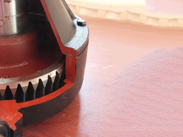 1) El engranaje sinfín consiste en acero forjado de alta resistencia con una dureza Brinell de 210 mientras otros engranajes están hechos de hierro fundido y tienen una variación en sus niveles de dureza. Este engranaje sinfín es diferente de aquellos hechos por arrabio gris.