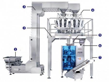 Envasadora vertical con pesadora electrónica de 10 cabezales